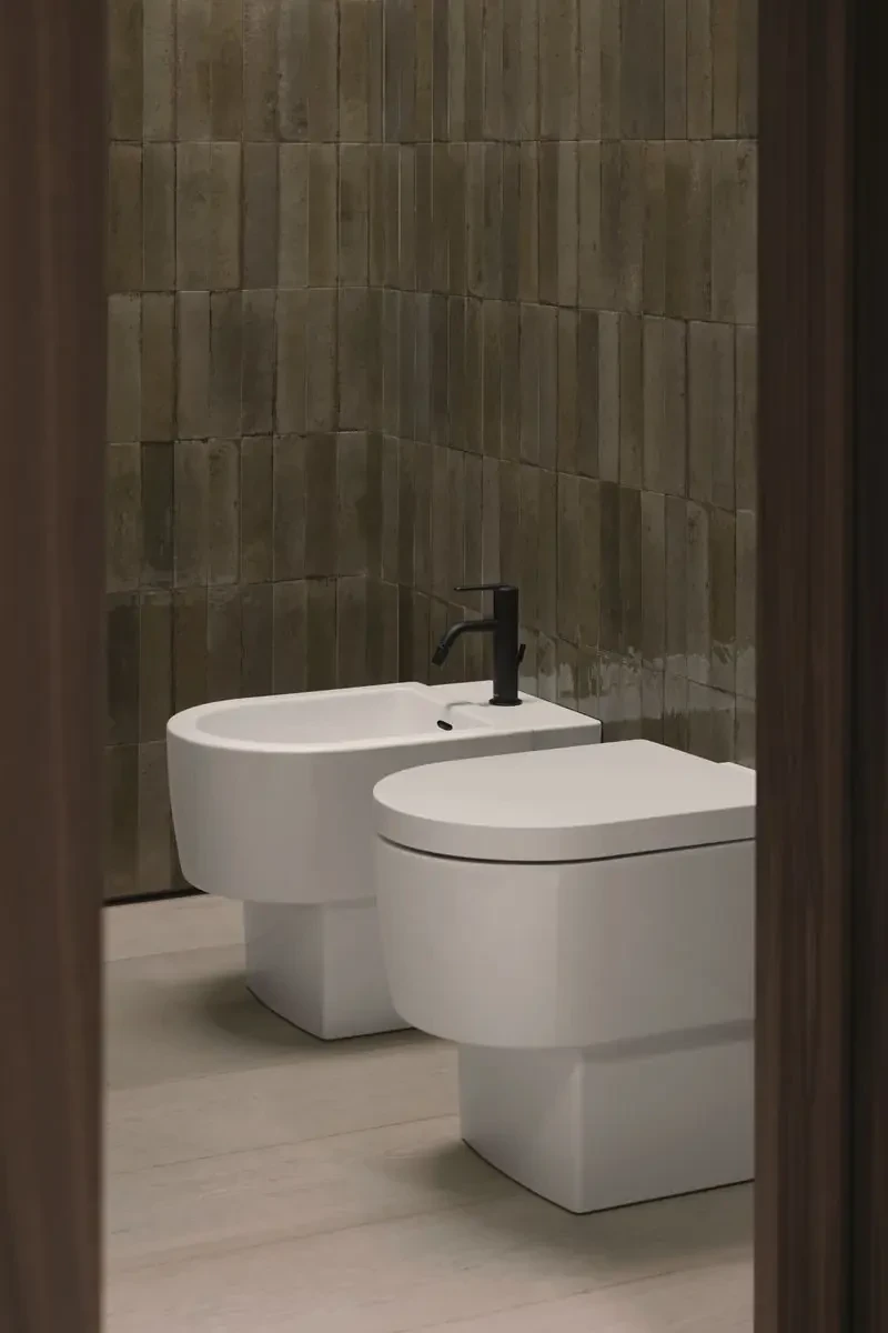 Die Objekte der neuen Badserie Balcoon von Patricia Urquiola verbinden einfache, geometrische Formen mit klaren Linien und schaffen so eine zurückhaltende, langlebige Ästhetik. Runde und ovale Aufsatzbecken wurden auf einem quadratischen Sockel platziert und entfalten sich so als skulpturale Blickpunkte. Dieses Spiel mit zwei Ebenen zieht sich durch die gesamte Kollektion – von den Waschbecken über die WCs und Bidets bis hin zu den Möbelelementen und Badewannen.